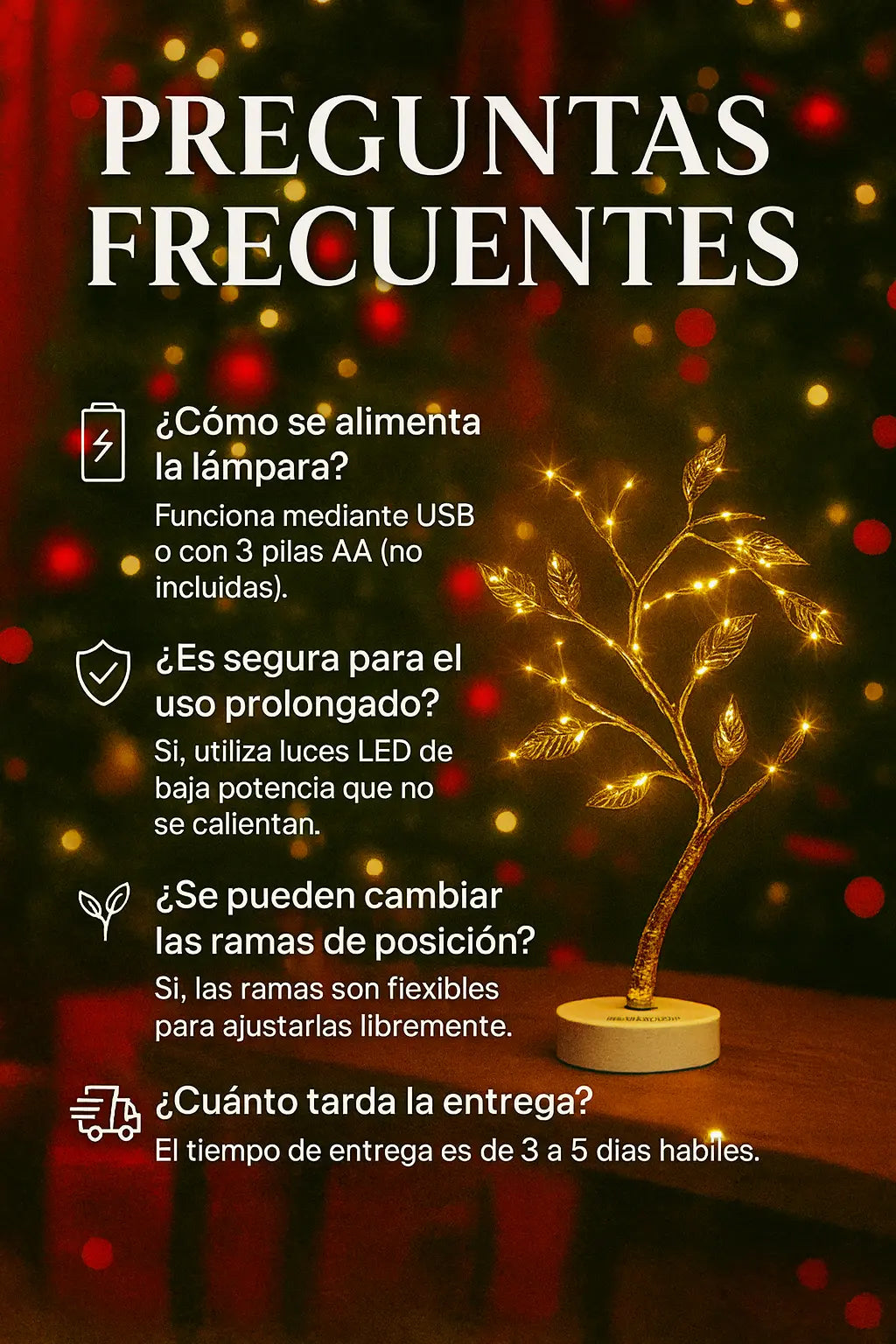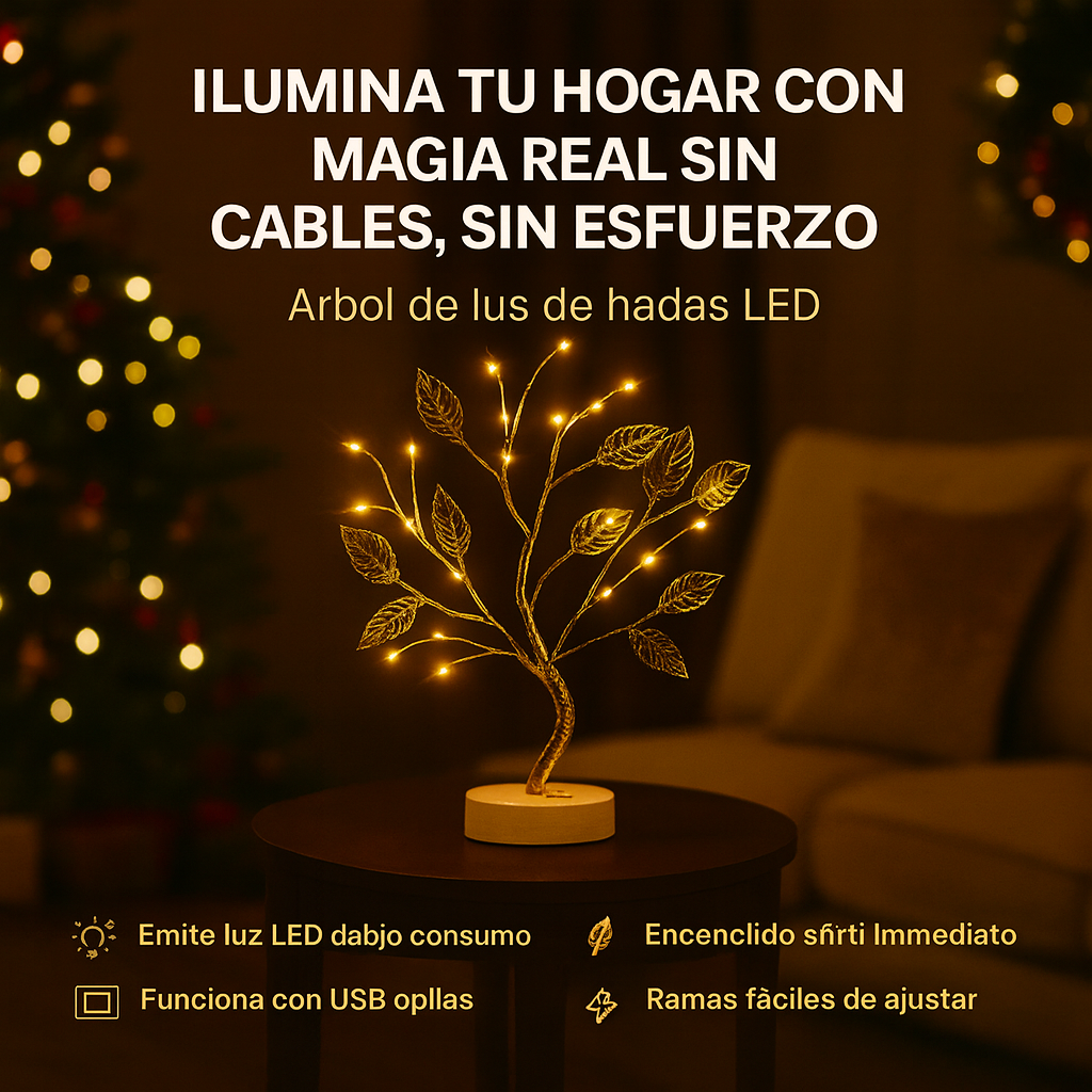 Árbol de Luz LED Decorativo – Iluminación Cálida para Hogar